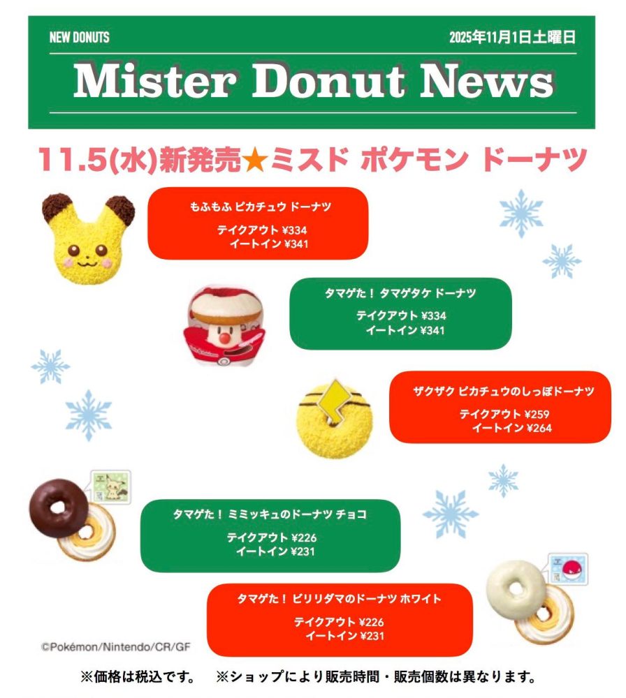 11月5日(水)より新発売☆ミスドポケモンドーナツ
