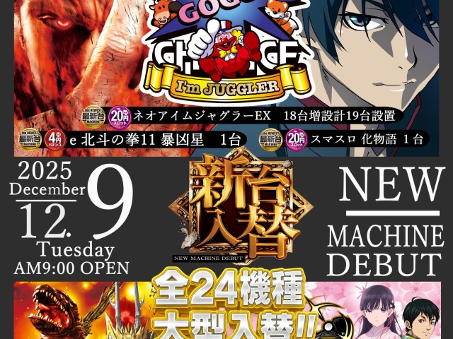 Aパンクラブ山ノ手店 12月9日 大型新台入替!!
